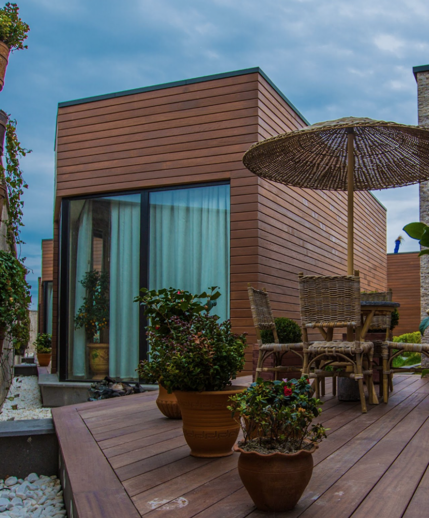Por muy bonita que sea, no todos los tipos de madera son adecuados para el uso exterior. Algunas de las más utilizadas por su resistencia son el Ipe, un tipo de madera fuerte, duradera y muy resistente a la humedad.